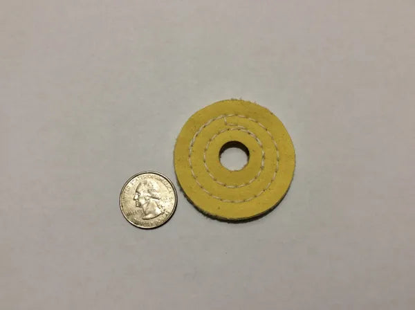 2" X 20 PLY SPIRAL SEWN BUFFING WHEEL 1/4" WIDE - YELLOW MILL TREATMENT Yellow Treated Material Full Disc Sewed Buffs or spiral sewn buffing wheels are harder than loose buffs and not as flexible. They are good for buffing on flat or accessible surfaces. They are sewn in a spiral pattern from the center to the edge of the buff. This particular buffing wheel is sewn with 1/4" spiral sewing to give the buff extra strength for heavy cutting jobs. These buffs can also be made in other sewing constructions. We can make these wheels to your specifications by telling us what you want in our Request a Quote form. These wheels are made from HEAVY GAGE YELLOW TREATED MATERIAL. This material is a great CUT material. It's good for cutting on all metals where extra pressure is needed to achieve good cut. These buffs work great with all types of CUT buffing compounds. High gloss color compounds will work too. These wheels work great when more pressure is needed to push on the buffing wheel and cut.
