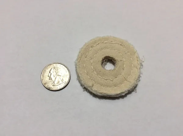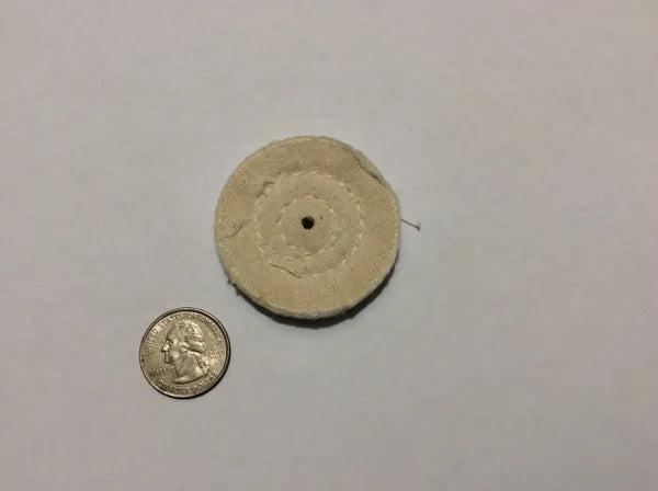 2" X 20 PLY White Cotton Buffing Wheel 2 Rows Sewn 20 plys of cotton, 1/4" Wide. Sewn in a spiral pattern from the center to the edge of the buff. These wheels are designed to be ganged together on the buffing machine shaft to build the desired thickness of the total buffing head. In other words put as many of these on the shaft to make the wheel as wide as you need it to be. They are a 1/4 inch wide so 4 wheels would make a 1 inch wide head or buff. The Pinhole center is for use on a tapered spindle or mandrel. These white spiral sewn buffs are great for all types of buffing and polishing. These wheels are good for use with all buffing compounds and polishes including greaseless compound. Great for a dremel or drill.